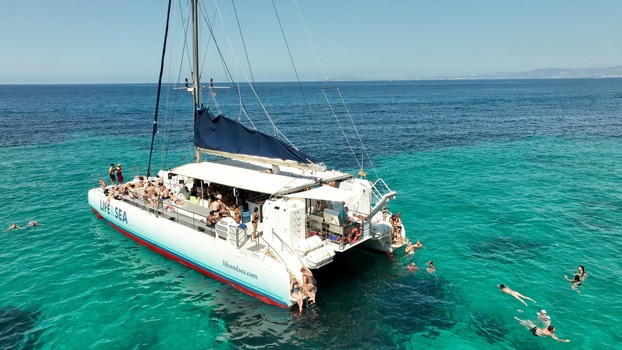 Tour in catamarano a prezzi accessibili a Maiorca, navigate, nuotate e godetevi qualche ora di mare. Il cibo non è incluso. Ma è comunque possibile acquistare cocktail e bevande a bordo a un prezzo accessibile. Venite a godervi il nostro tour di 2 ore, prenotatelo subito!